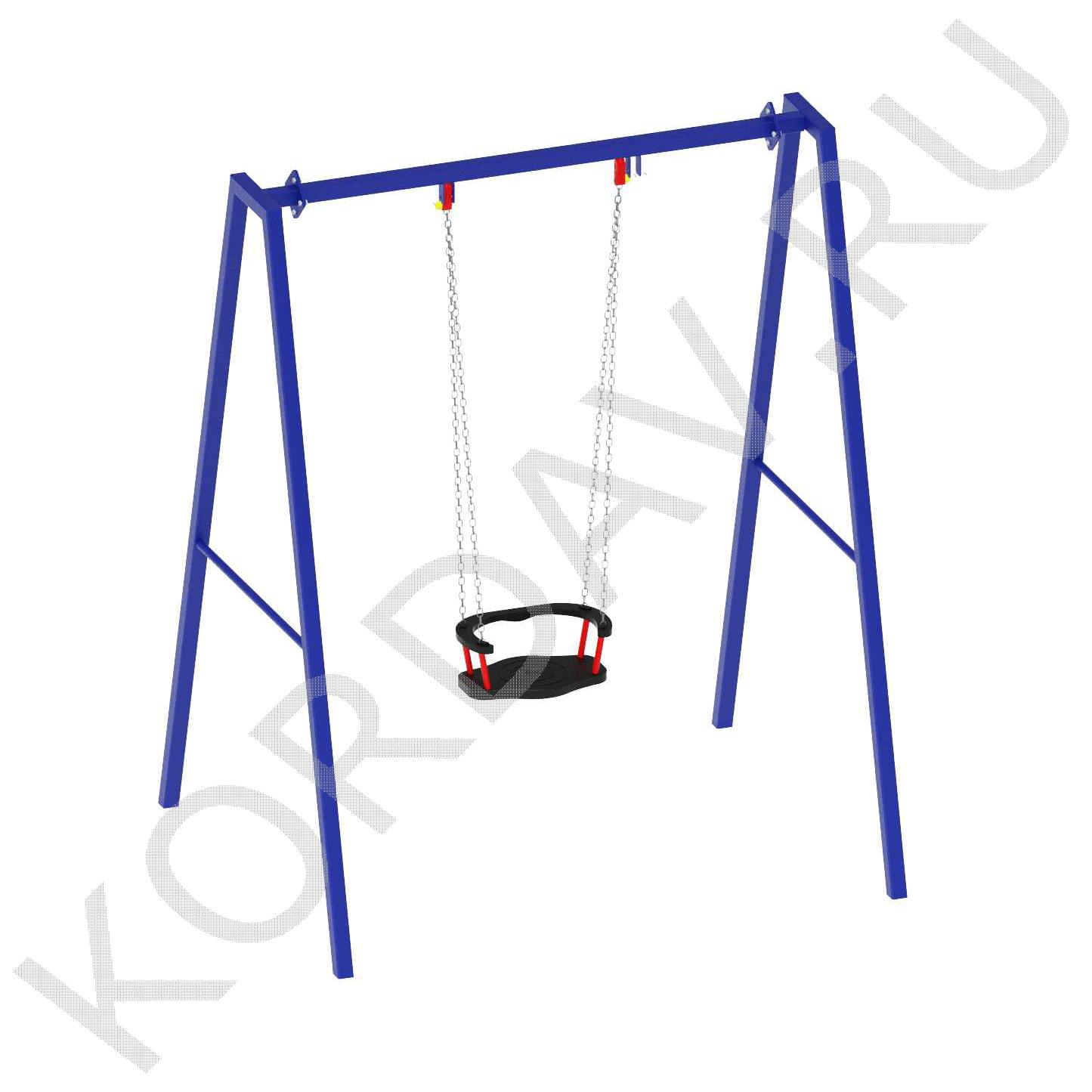 Одинарные металлические качели ИО 6.130 подойдут для благоустройства приусадебного участка, игровых или спортивных площадок. Качели состоят из двух стоек с перегородками, пазов для крепления подвесных элементов и перекладины. Конструкция изготовлена из стальной трубы круглого сечения, металлического профиля и пластины. Для сохранения металла от коррозии, детали покрыты двумя слоями синей порошковой краски. Для безопасности, все сварные швы шлифуют, а выступающие части резьбовых соединений закрывают колпачками из плотного пластика. В качестве подвеса на цепях к качелям можно установить: резиновую люльку, сиденье из ламинированной фанеры без спинки и с ней, с дополнительным ограждением из цепи или без него.Стойка качели: Выполнена из стальной профильной квадратной трубы 50х50х2, окрашена порошковой краской.