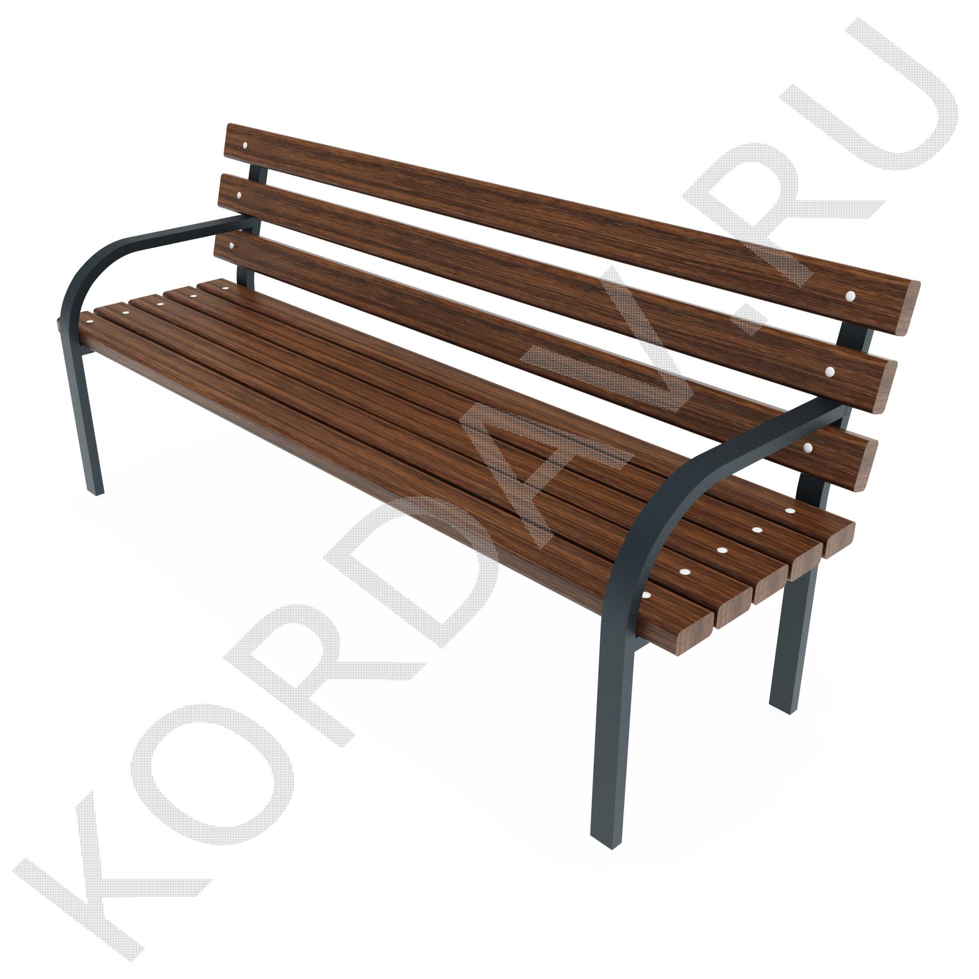 Таким образом, данная парковая скамья отличается прочной металлической конструкцией с плавными изгибами и качественной обработкой поверхностей, а также удобным деревянным сидением и спинкой, защищенными от атмосферных воздействий специальными красками.